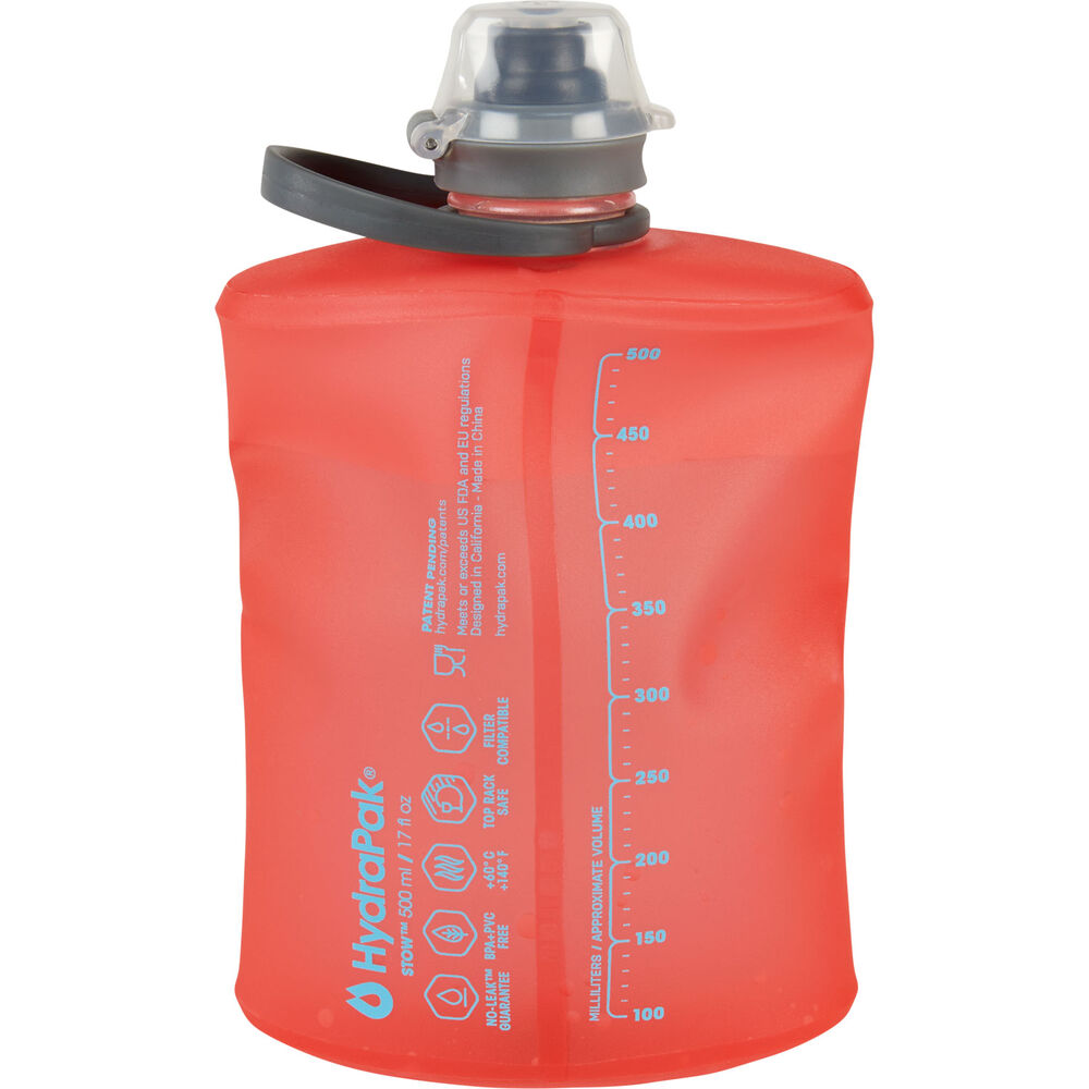 Stay hydrated on the go with the flexible, durable and ultra-portable HydraPak® Stow™ 500ml. This handy water bottle is made of sturdy, safe thermoplastic polyurethane and unlike hard bottles, it conforms to whatever space you stick it in, whether that’s your back pocket or your hip pack. An easy-open flip-top cap makes it easy to grab a sip while you hike, and the spill-proof silicone nozzle ensures you don’t waste a drop. A flexible bail handle lets you carry it or attach it to a pack, and when the bottle’s empty, simply flatten it, roll it up and tuck it into the handle for compact storage.