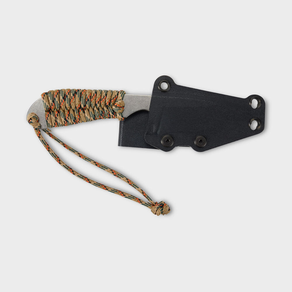 While there’s plenty to be said about knifemaking as an art, reliability is job one in the field. Thankfully, the White River M1 Backpacker packs well-crafted appeal as well as offering sturdiness in spades. The blade and handle are forged from a single piece of CPM S35VN steel – notable for its toughness, edge retention and excellent corrosion resistance. The drop-point 3" blade comes sharp enough for a proper shave right out of the box. 550 paracord wrap handle gives you a comfortable grip and unravels to double as an emergency length of rope – should a wilderness adventure ever start to go sideways. Round all that off with a versatile Kydex sheath that secures the blade whether you strap it to your belt or pack vertically, upside down or on its side.